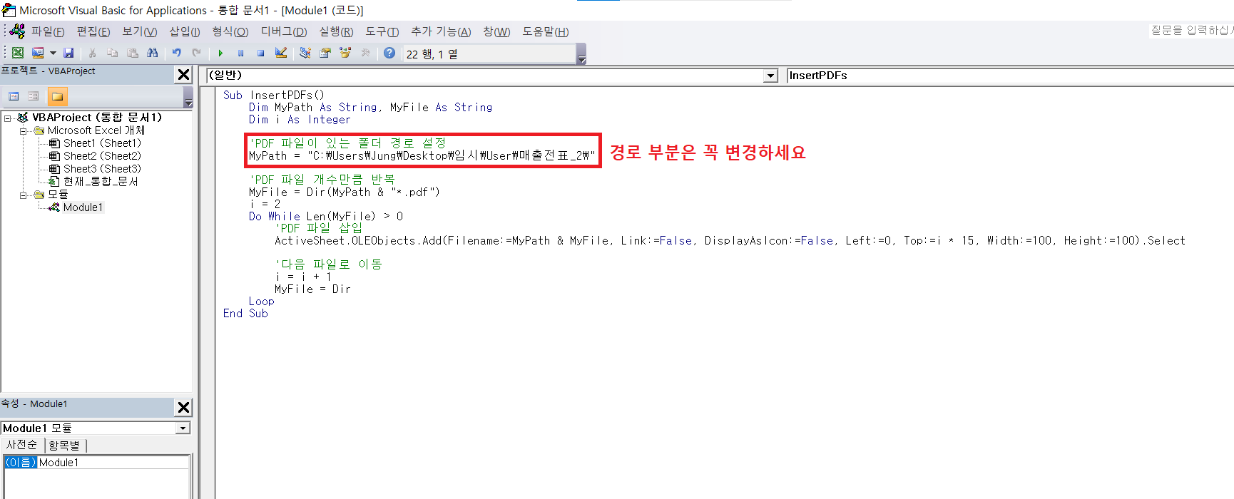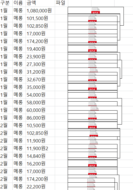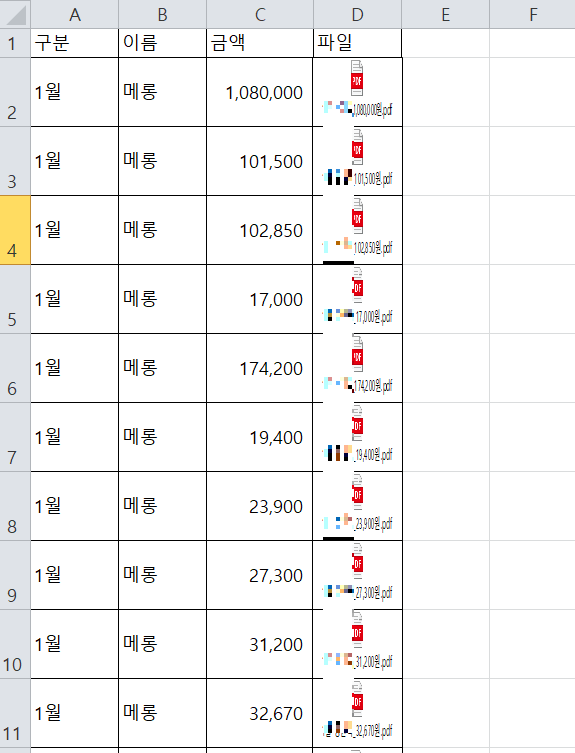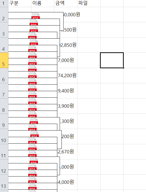 - 2023.04.22 :: 엑셀파일에 PDF 파일 일괄 첨부(객체 삽입) 1