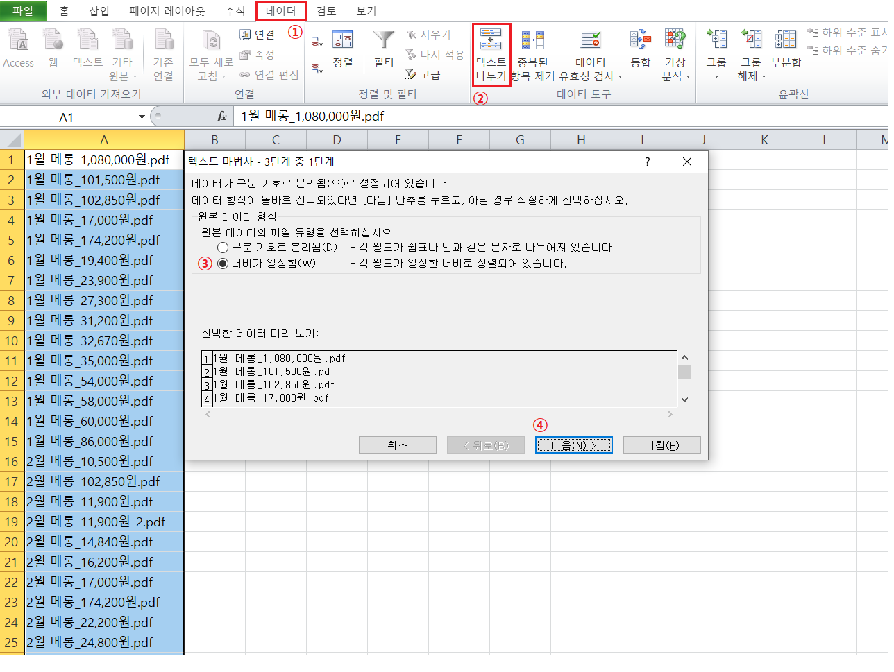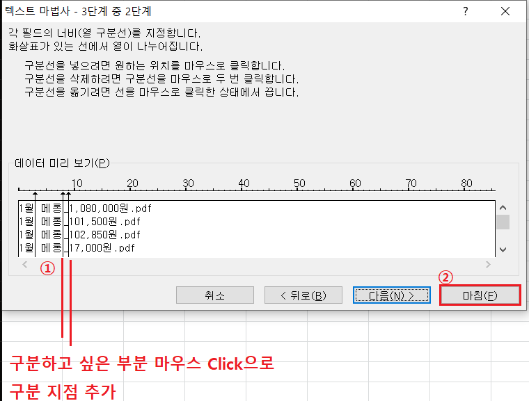 위와 같이 텍스트 나누기 후 필요없는 부분 지워야겠죠!?