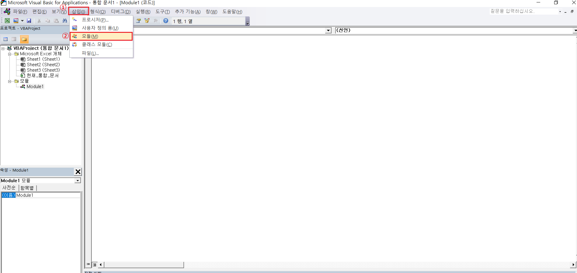 2. VBA 언어(매크로) 코드 입력(코드 복사/붙여넣기)