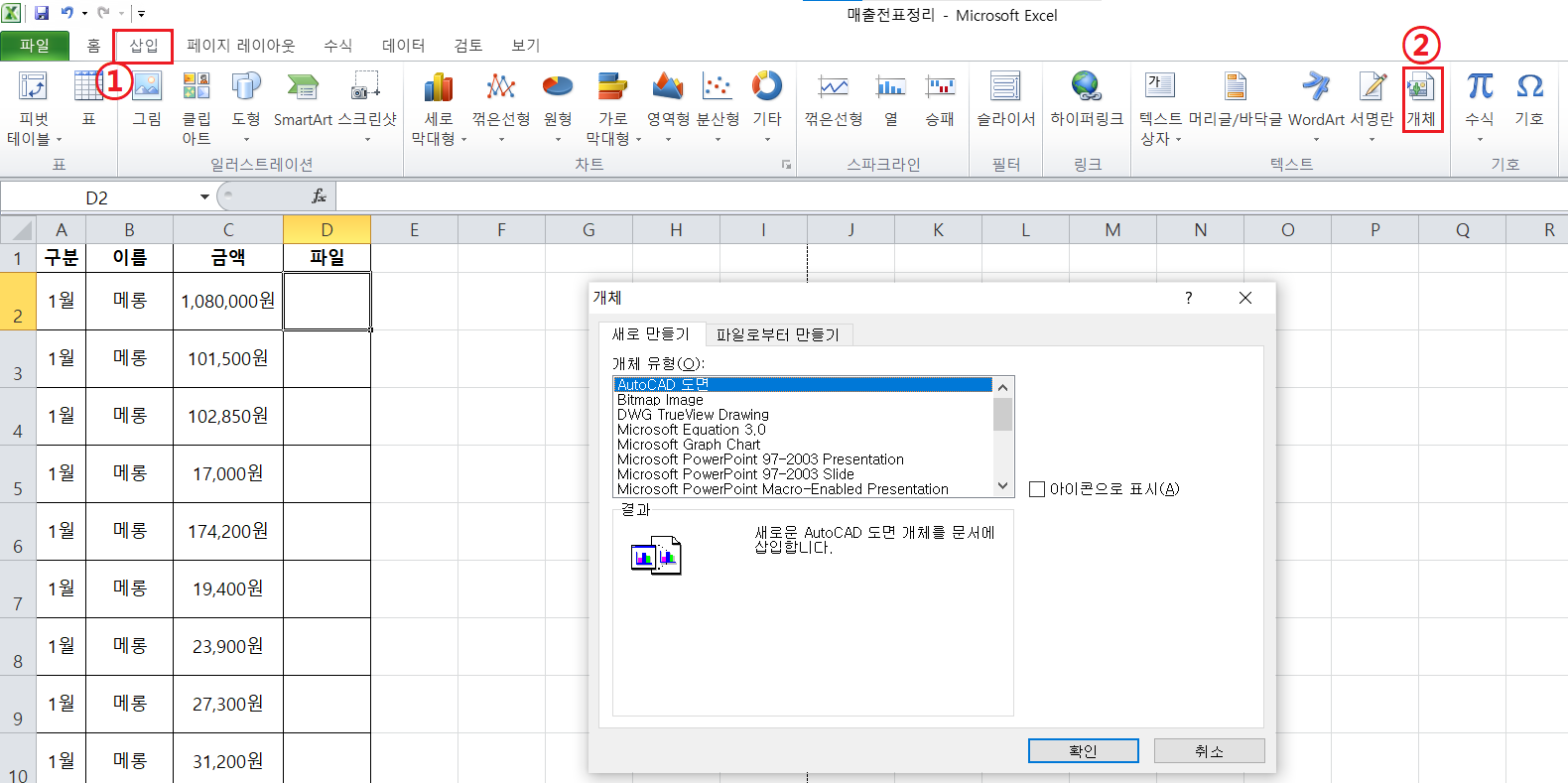 안녕하세요, 파일 정리 하는데 엑셀파일을 사용하다 보면 객체 삽입 하는 경우가 은근 많더라고요