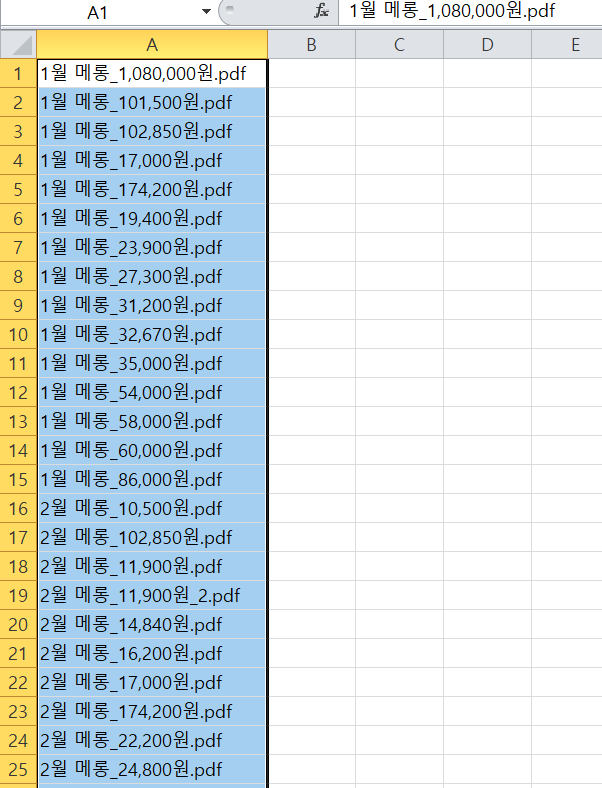 우선 폴더 내 수많은 파일을 불러와서 엑셀파일에 불러올게요.