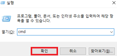 우선 키보드의 "윈도우키"+"R" 버튼 누른 후 CMD를 실행 해 주세요