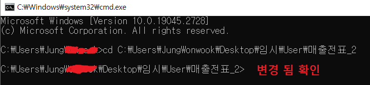 그럴 경우 CMD 에서 현재 경로가 변경됩니다.