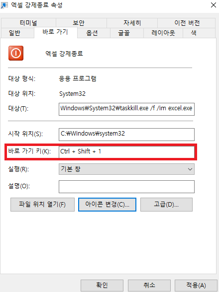저는 바로가기 생성 후 종료된다는 거를 눈에 알기쉽게 아이콘 변경 하였고