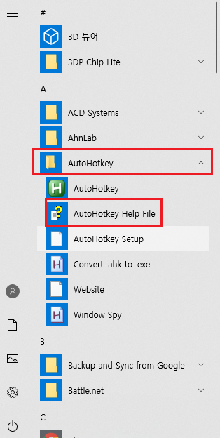 시작 눌러보시면 Autohotkey 폴더 생성되어 있을거에요